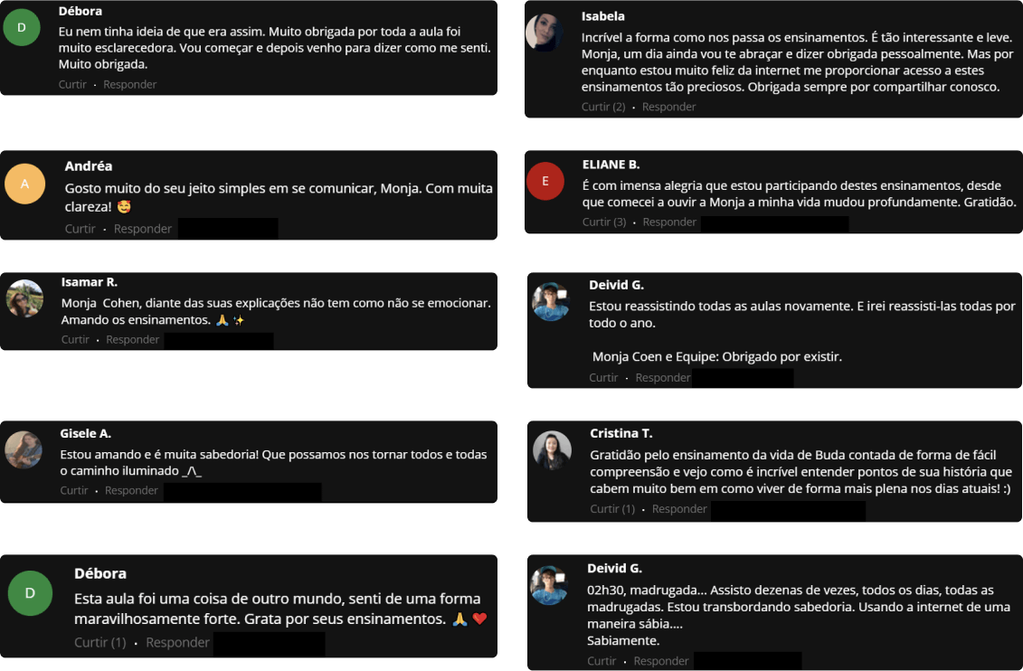 Fazendo sua matrícula ainda hoje, você terá a possibilidade de participar de dois encontros ao vivo, exclusivos aos alunos, diretamente com a Monja Coen, via Zoom, para aprender mais e tirar dúvidas. É uma oportunidade única e preciosa!
